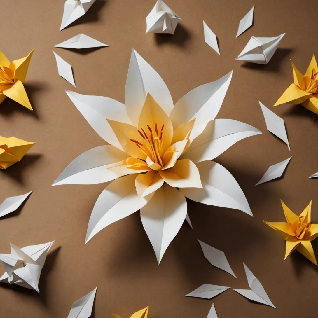 Оригами — это искусство складывания бумаги без использования клея или ножниц. Для создания лилии из бумаги в стиле оригами нужно: